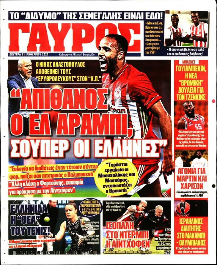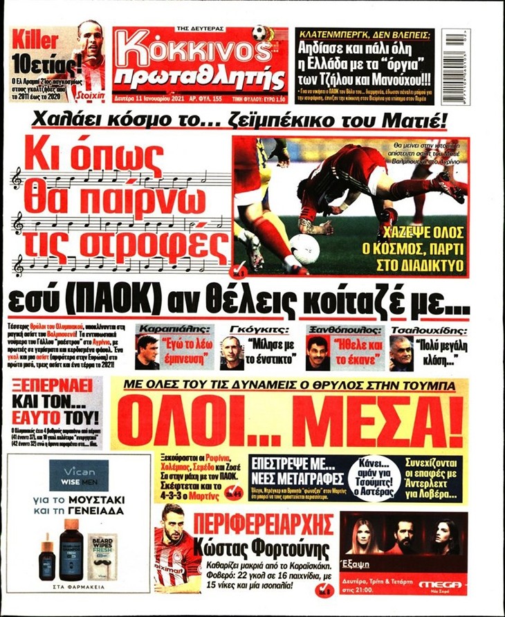 Το πρωτοσέλιδο του Κόκκινου Πρωταθλητή (11/1)
