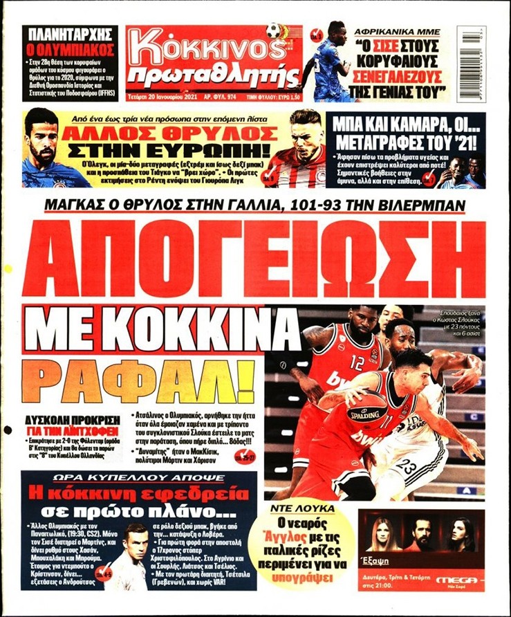 Το πρωτοσέλιδο του Κόκκινου Πρωταθλητή (20/1)