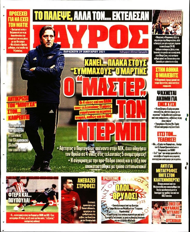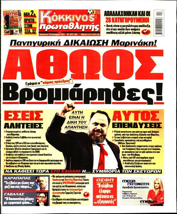 Το πρωτοσέλιδο του Κόκκινου Πρωταθλητή (29/1)