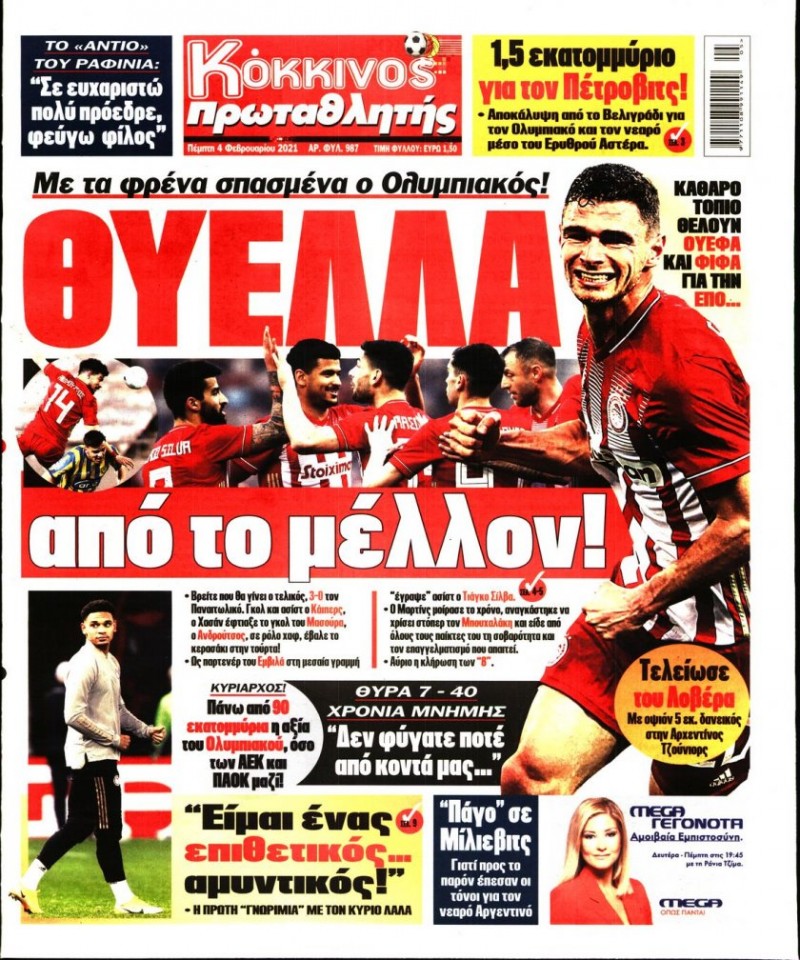 Το πρωτοσέλιδο του «Κόκκινου Πρωταθλητή», αλλά και του «ΓΑΥΡΟΥ», μπορείτε να δείτε μέσω του σάιτ μας. Καθημερινά εδώ, πώς κυκλοφορεί η εφημερίδα που καλύπτει όλη την «ερυθρόλευκη» δραστηριότητα.