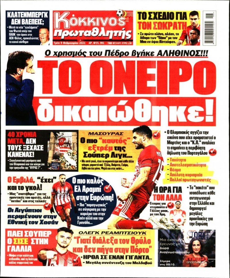 Το πρωτοσέλιδο του Κόκκινου Πρωταθλητή (9/2)