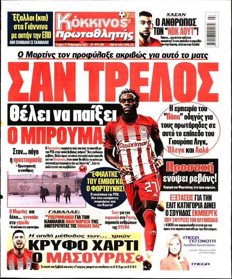 Το πρωτοσέλιδο του Κόκκινου Πρωταθλητή (17/2)