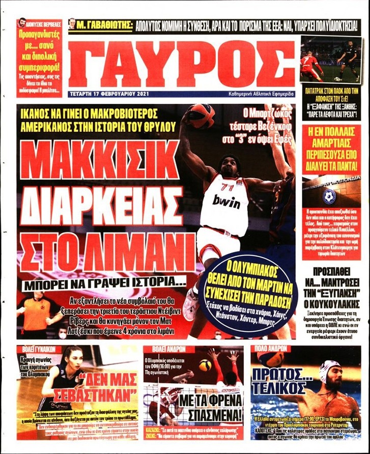 Το πρωτοσέλιδο του «Κόκκινου Πρωταθλητή», αλλά και του «ΓΑΥΡΟΥ», μπορείτε να δείτε μέσω του σάιτ μας. Καθημερινά εδώ, πώς κυκλοφορεί η εφημερίδα που καλύπτει όλη την «ερυθρόλευκη» δραστηριότητα.