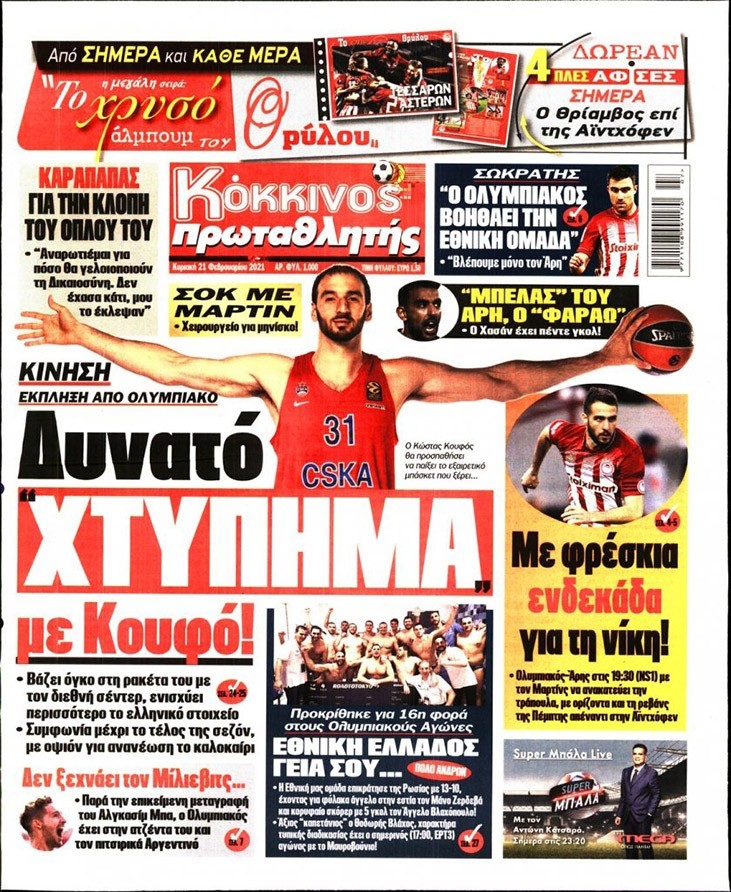Το πρωτοσέλιδο του Κόκκινου Πρωταθλητή (21/2)