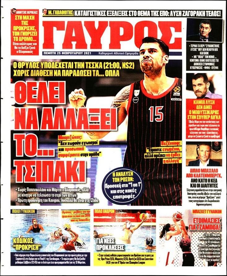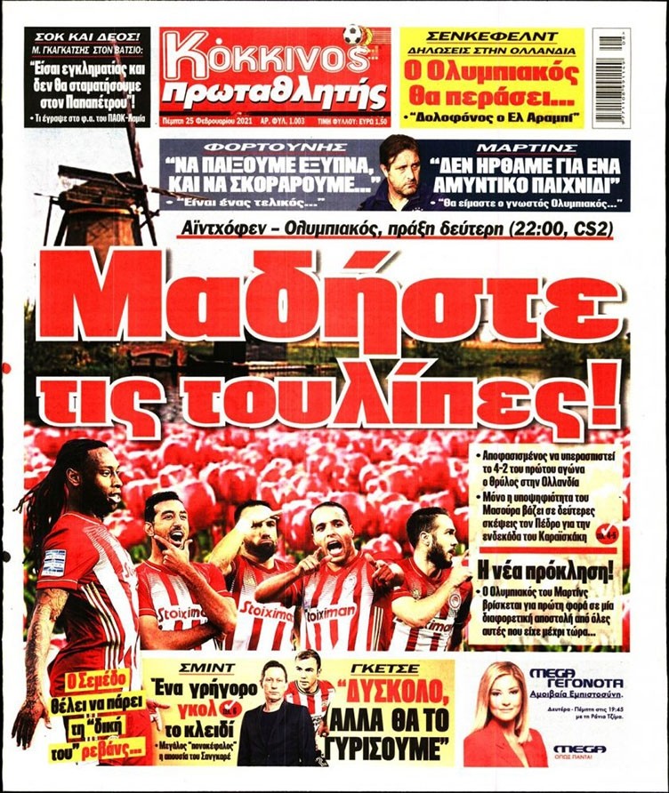 Το πρωτοσέλιδο του Κόκκινου Πρωταθλητή (25/2)