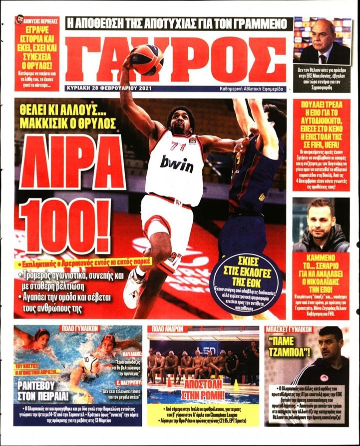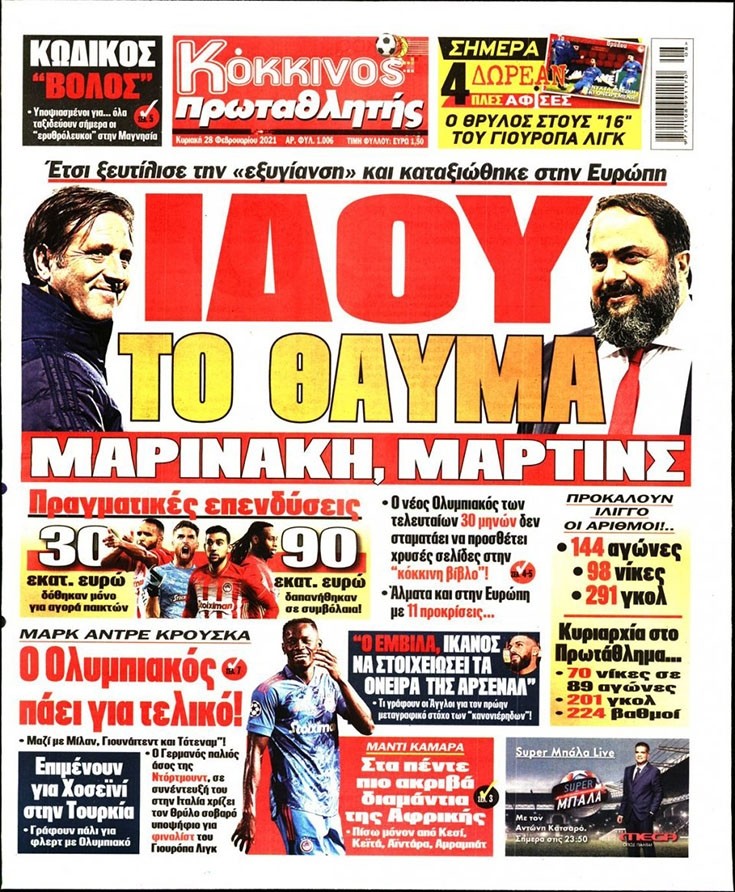 Το πρωτοσέλιδο του Κόκκινου Πρωταθλητή (28/2)