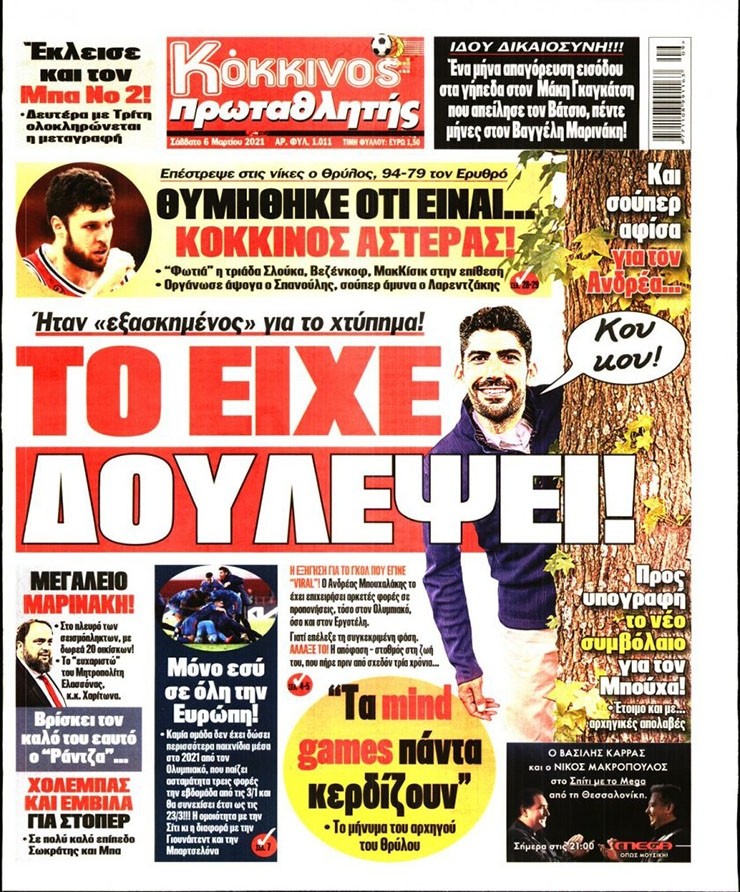 Το πρωτοσέλιδο του Κόκκινου Πρωταθλητή (6/3)