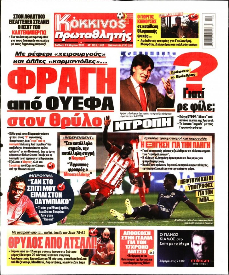 Το πρωτοσέλιδο του Κόκκινου Πρωταθλητή (13/3)
