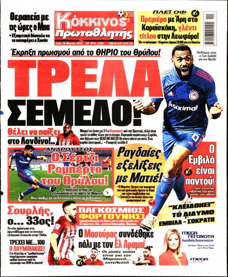 Το πρωτοσέλιδο του Κόκκινου Πρωταθλητή (16/3)