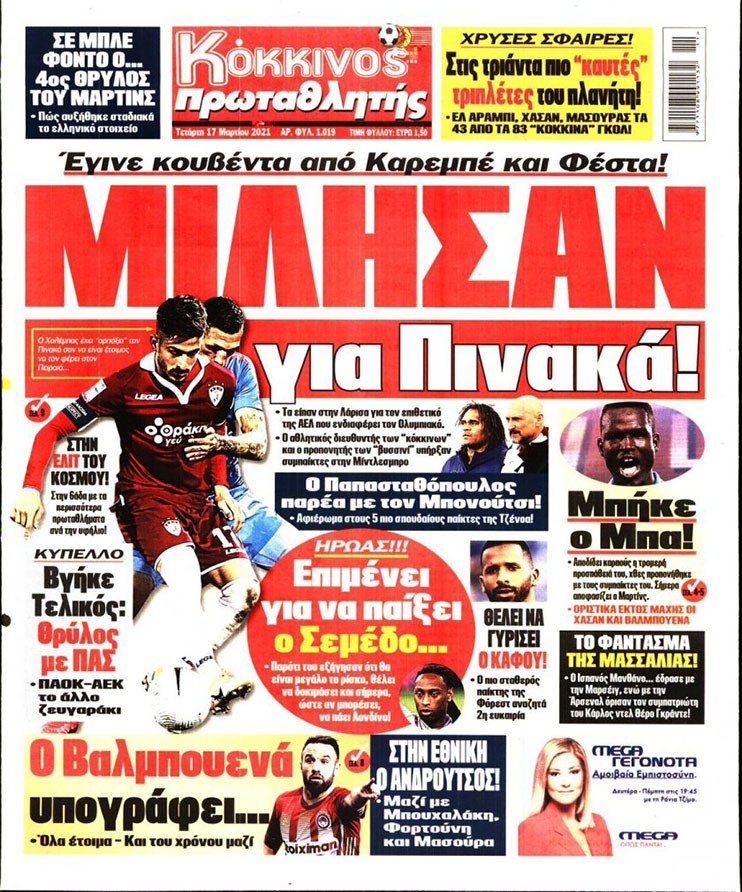 Το πρωτοσέλιδο του Κόκκινου Πρωταθλητή (17/3)