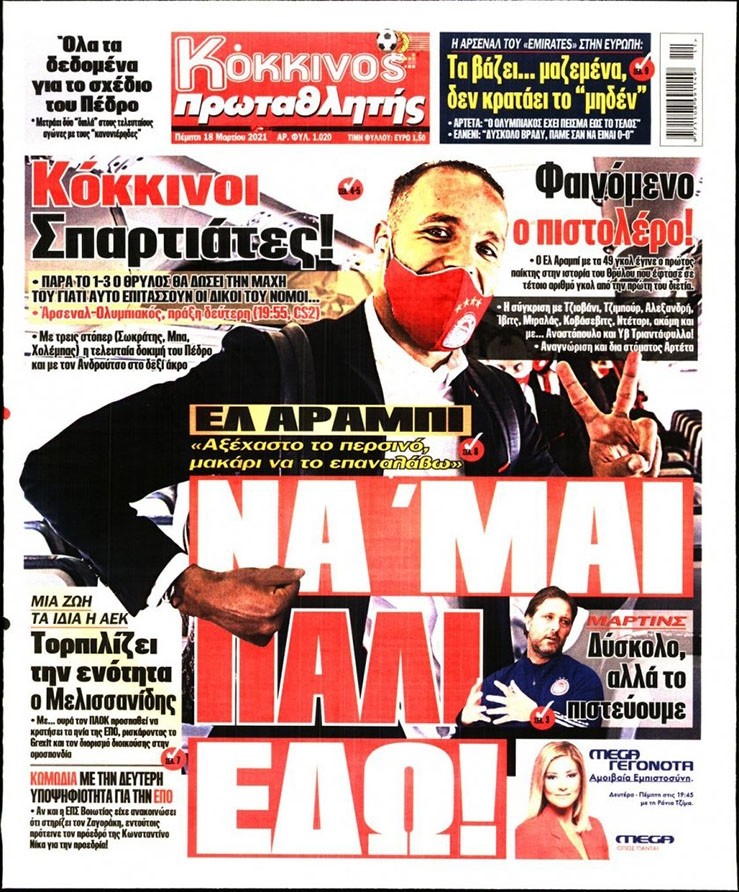 Το πρωτοσέλιδο του Κόκκινου Πρωταθλητή (18/3)