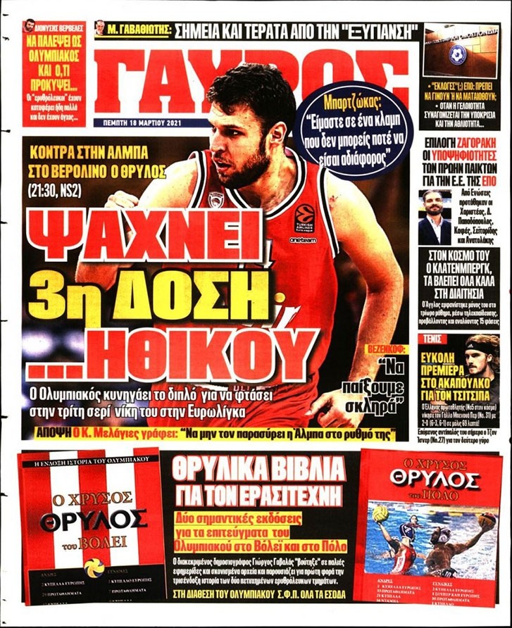 Το πρωτοσέλιδο του «Κόκκινου Πρωταθλητή», αλλά και του «ΓΑΥΡΟΥ», μπορείτε να δείτε μέσω του σάιτ μας. Καθημερινά εδώ, πώς κυκλοφορεί η εφημερίδα που καλύπτει όλη την «ερυθρόλευκη» δραστηριότητα.