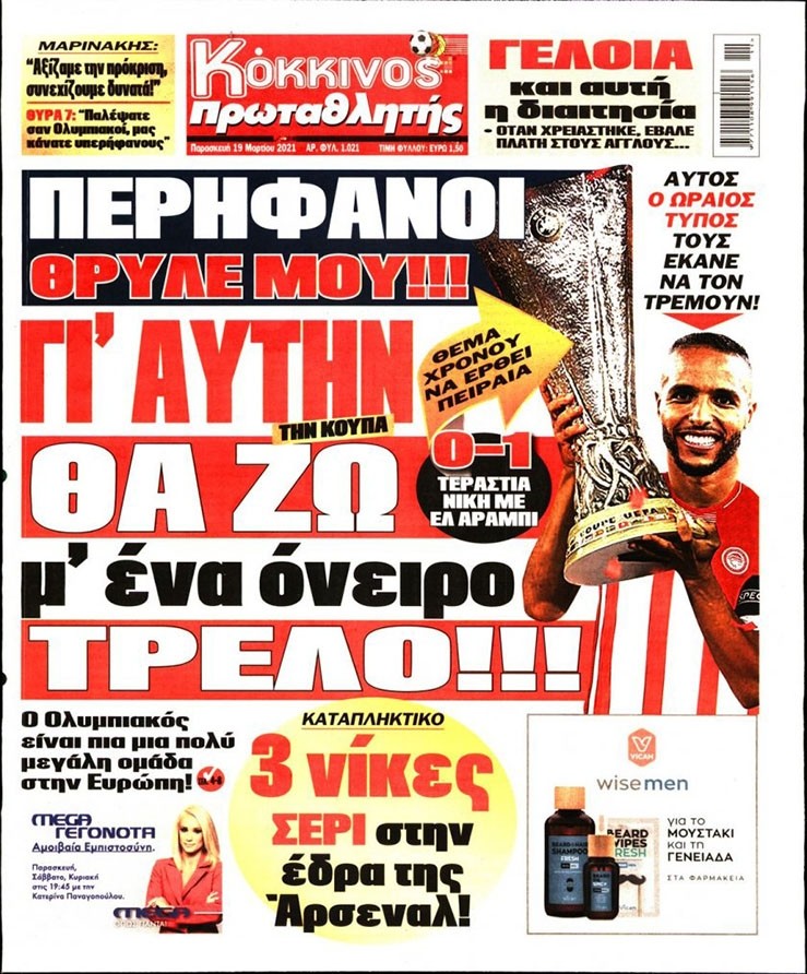 Το πρωτοσέλιδο του Κόκκινου Πρωταθλητή (19/3)