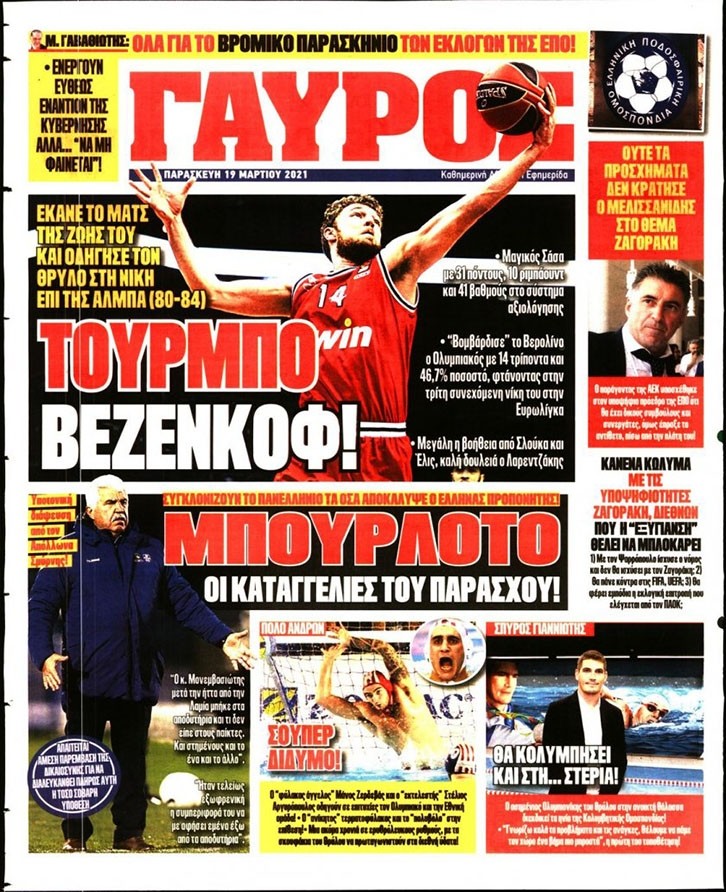 Το πρωτοσέλιδο του «Κόκκινου Πρωταθλητή», αλλά και του «ΓΑΥΡΟΥ», μπορείτε να δείτε μέσω του σάιτ μας. Καθημερινά εδώ, πώς κυκλοφορεί η εφημερίδα που καλύπτει όλη την «ερυθρόλευκη» δραστηριότητα.