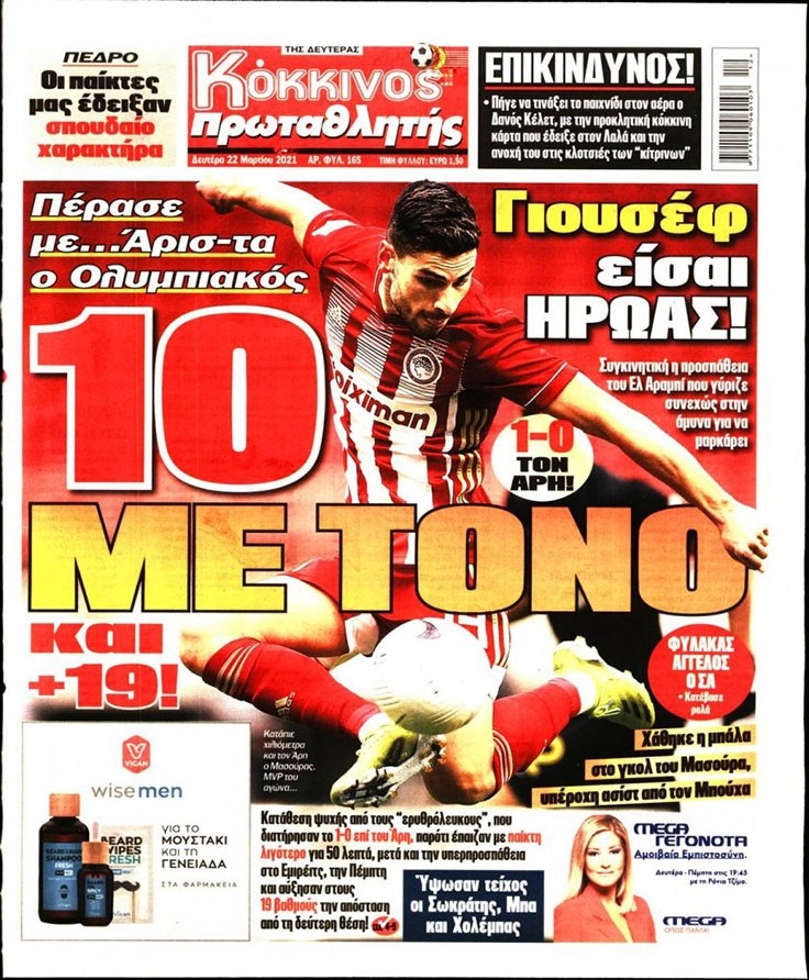 Το πρωτοσέλιδο του Κόκκινου Πρωταθλητή (22/3)