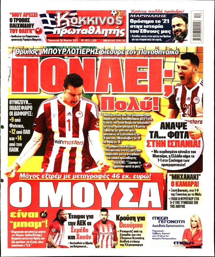 Το πρωτοσέλιδο του Κόκκινου Πρωταθλητή (26/3)