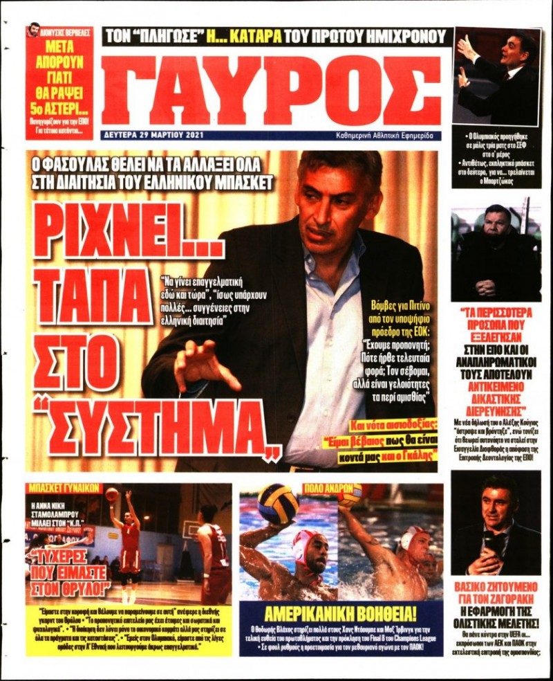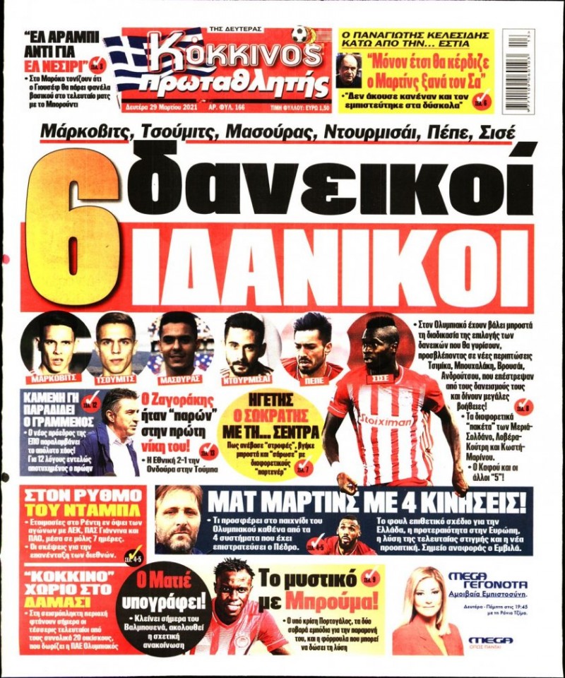 Το πρωτοσέλιδο του Κόκκινου Πρωταθλητή (29/3)