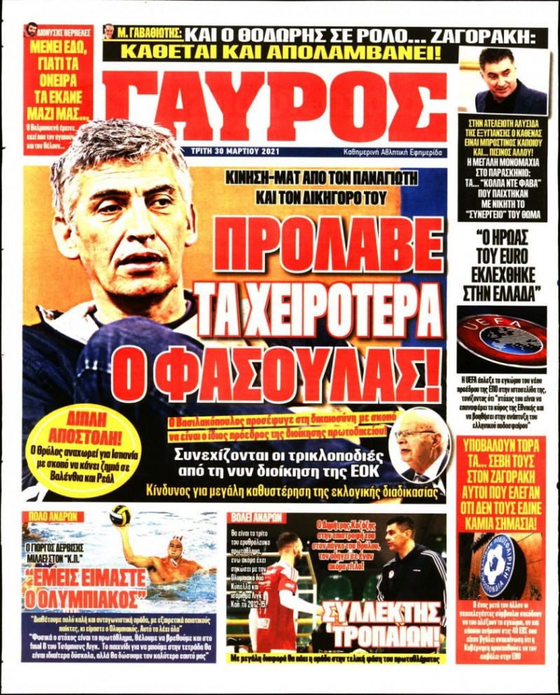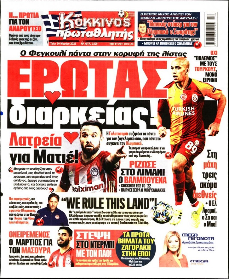 Το πρωτοσέλιδο του Κόκκινου Πρωταθλητή (30/3)