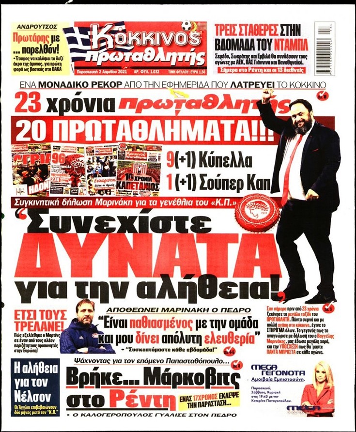 Το πρωτοσέλιδο του Κόκκινου Πρωταθλητή (2/4)