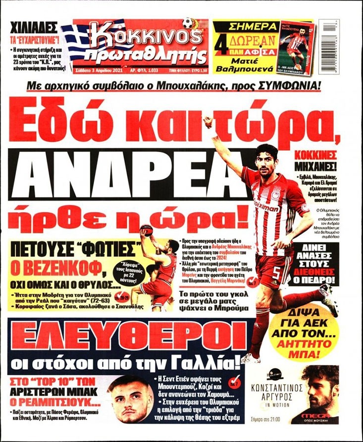 Το πρωτοσέλιδο του «Κόκκινου Πρωταθλητή», αλλά και του «ΓΑΥΡΟΥ», μπορείτε να δείτε μέσω του σάιτ μας. Καθημερινά εδώ, πώς κυκλοφορεί η εφημερίδα που καλύπτει όλη την «ερυθρόλευκη» δραστηριότητα.