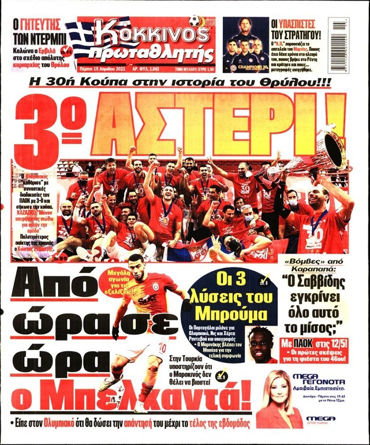 Το πρωτοσέλιδο του Κόκκινου Πρωταθλητή (15/4)