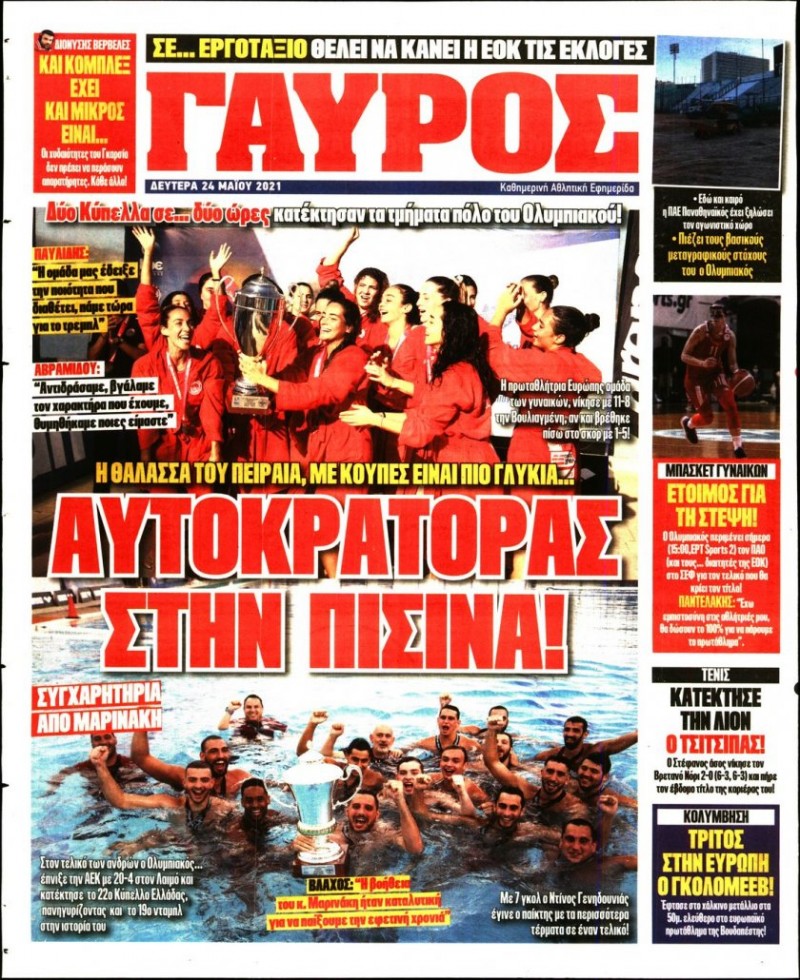 Το πρωτοσέλιδο του «Κόκκινου Πρωταθλητή», αλλά και του «ΓΑΥΡΟΥ», μπορείτε να δείτε μέσω του σάιτ μας. Καθημερινά εδώ, πώς κυκλοφορεί η εφημερίδα που καλύπτει όλη την «ερυθρόλευκη» δραστηριότητα.