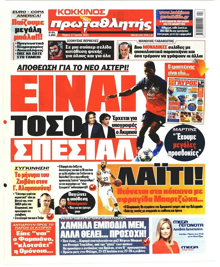 Το πρωτοσέλιδο του Κόκκινου Πρωταθλητή (17/6)