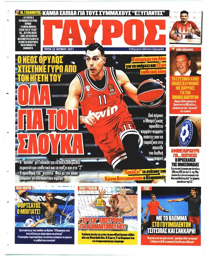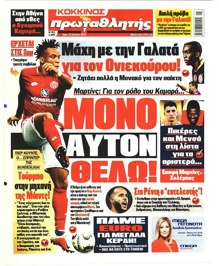 Το πρωτοσέλιδο του Κόκκινου Πρωταθλητή (22/6)