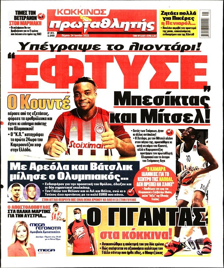 Το πρωτοσέλιδο του Κόκκινου Πρωταθλητή (24/6)