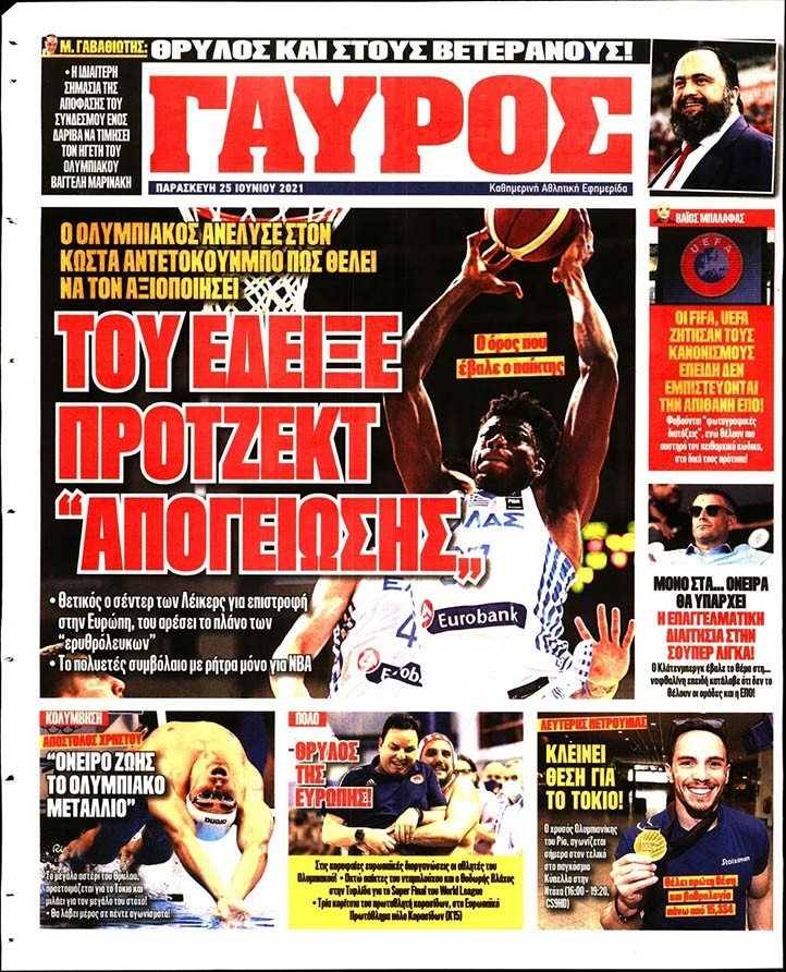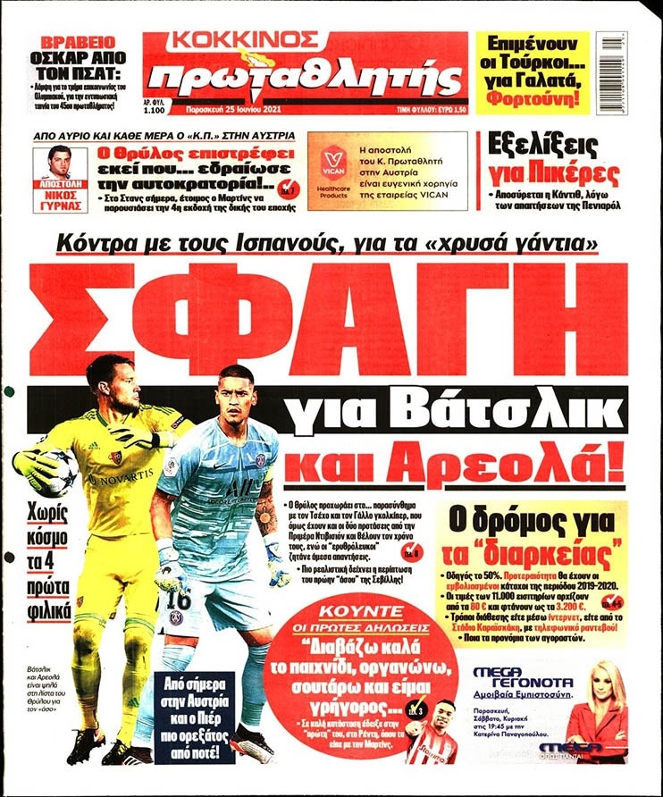 Το πρωτοσέλιδο του Κόκκινου Πρωταθλητή (25/6)