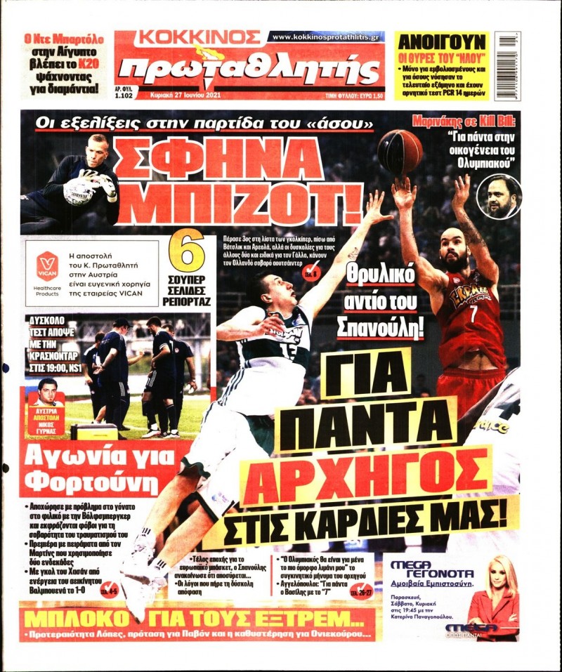 Το πρωτοσέλιδο του Κόκκινου Πρωταθλητή (27/6)