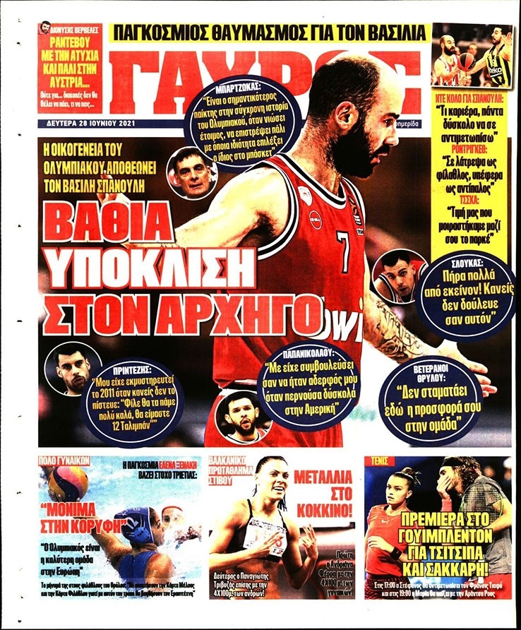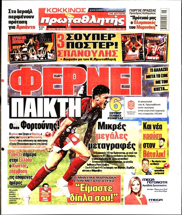 Το πρωτοσέλιδο του Κόκκινου Πρωταθλητή (28/6)