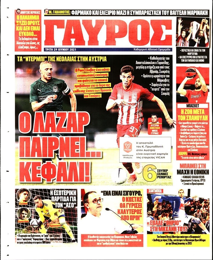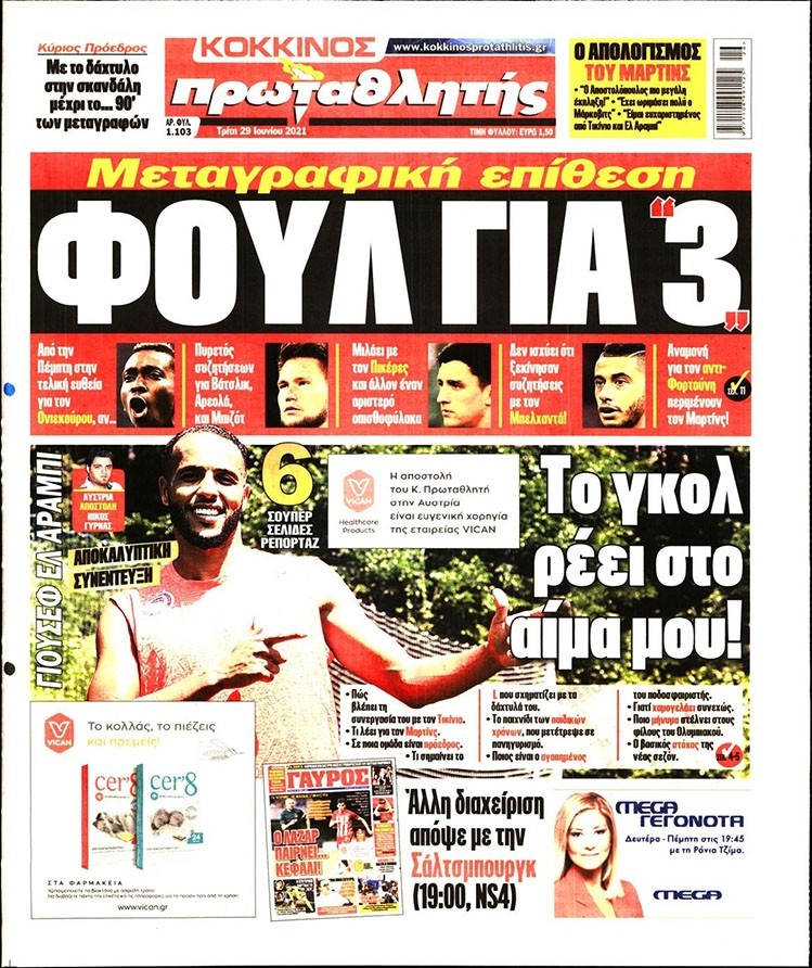 Το πρωτοσέλιδο του Κόκκινου Πρωταθλητή (29/6)