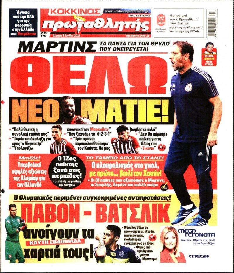 Το πρωτοσέλιδο του «Κόκκινου Πρωταθλητή», αλλά και του «ΓΑΥΡΟΥ», μπορείτε να δείτε μέσω του σάιτ μας. Καθημερινά εδώ, πώς κυκλοφορεί η εφημερίδα που καλύπτει όλη την «ερυθρόλευκη» δραστηριότητα.
