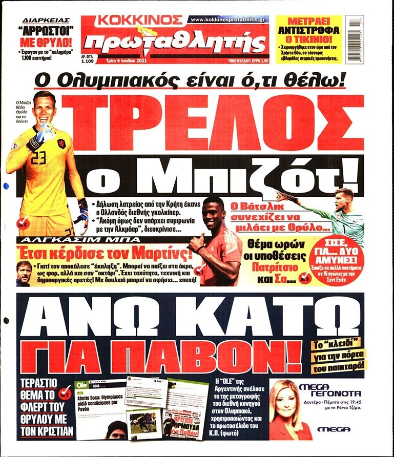 Το πρωτοσέλιδο του «Κόκκινου Πρωταθλητή», μπορείτε να δείτε μέσω του σάιτ μας. Καθημερινά εδώ, πώς κυκλοφορεί η εφημερίδα που καλύπτει όλη την «ερυθρόλευκη» δραστηριότητα.