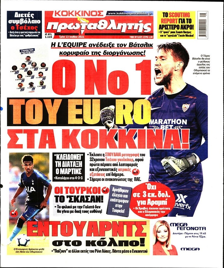 Το πρωτοσέλιδο του Κόκκινου Πρωταθλητή (13/7)