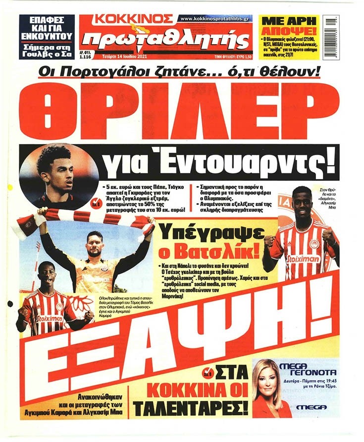 Το πρωτοσέλιδο του Κόκκινου Πρωταθλητή (14/7)