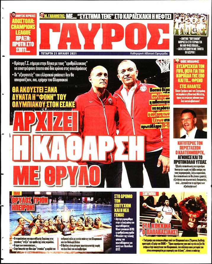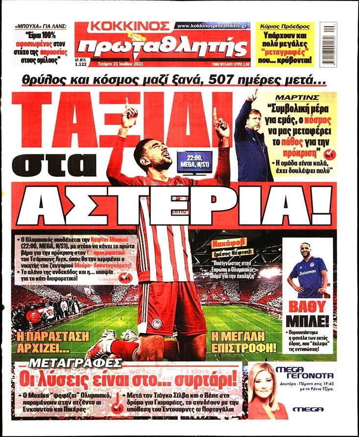 Το πρωτοσέλιδο του Κόκκινου Πρωταθλητή (21/7)