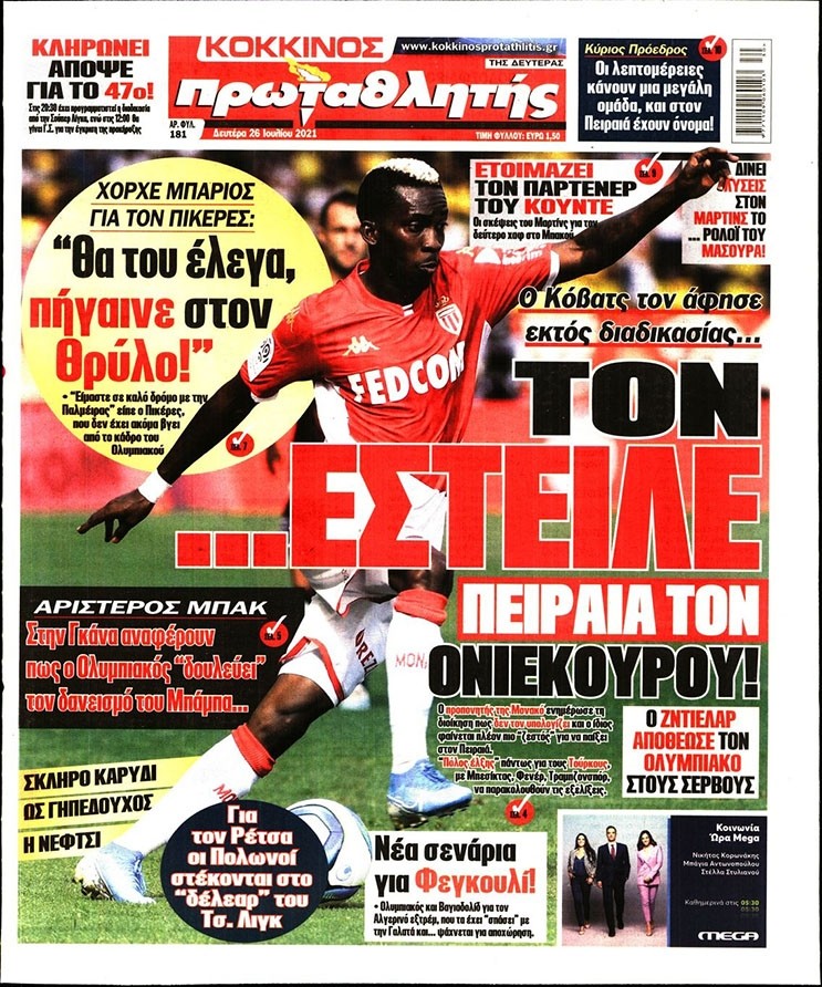 Το πρωτοσέλιδο του Κόκκινου Πρωταθλητή (26/7)