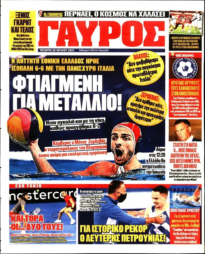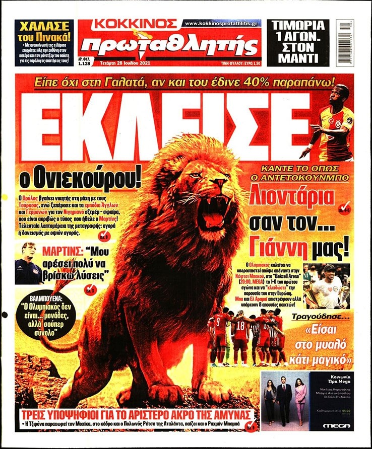 Το πρωτοσέλιδο του Κόκκινου Πρωταθλητή (28/7)