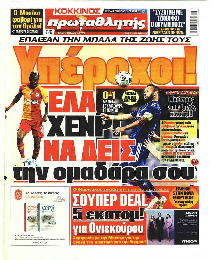 Το πρωτοσέλιδο του Κόκκινου Πρωταθλητή (29/7)