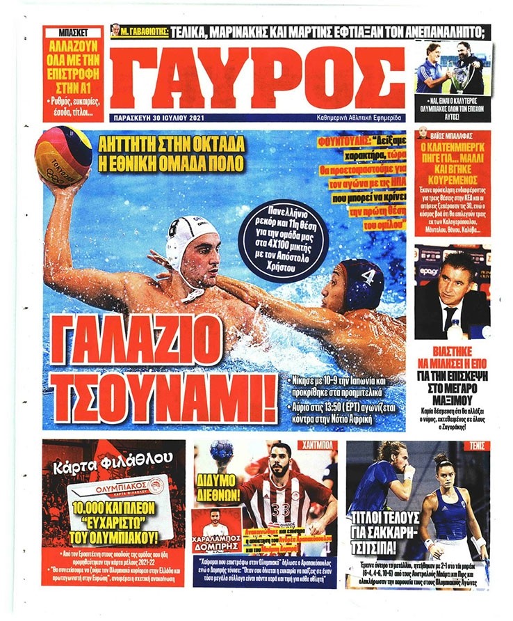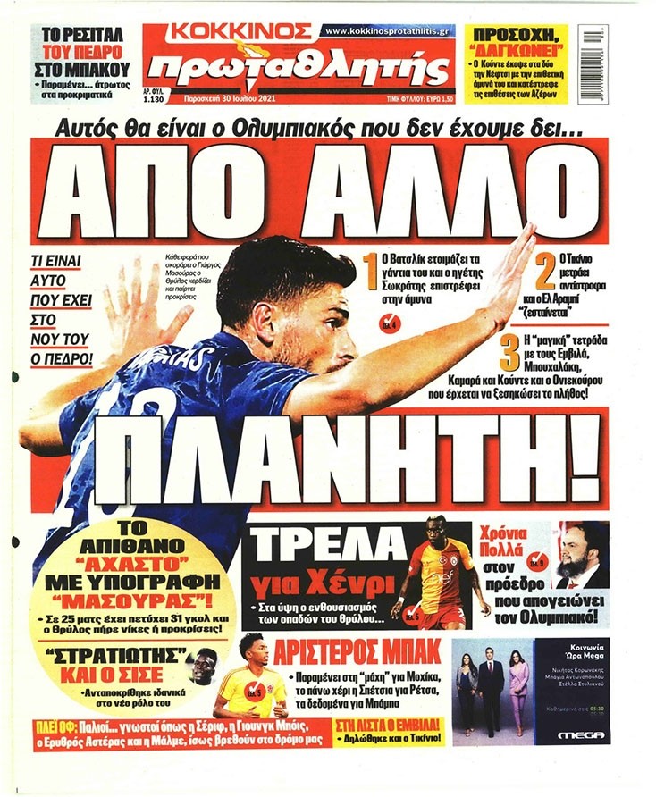 Το πρωτοσέλιδο του Κόκκινου Πρωταθλητή (30/7)