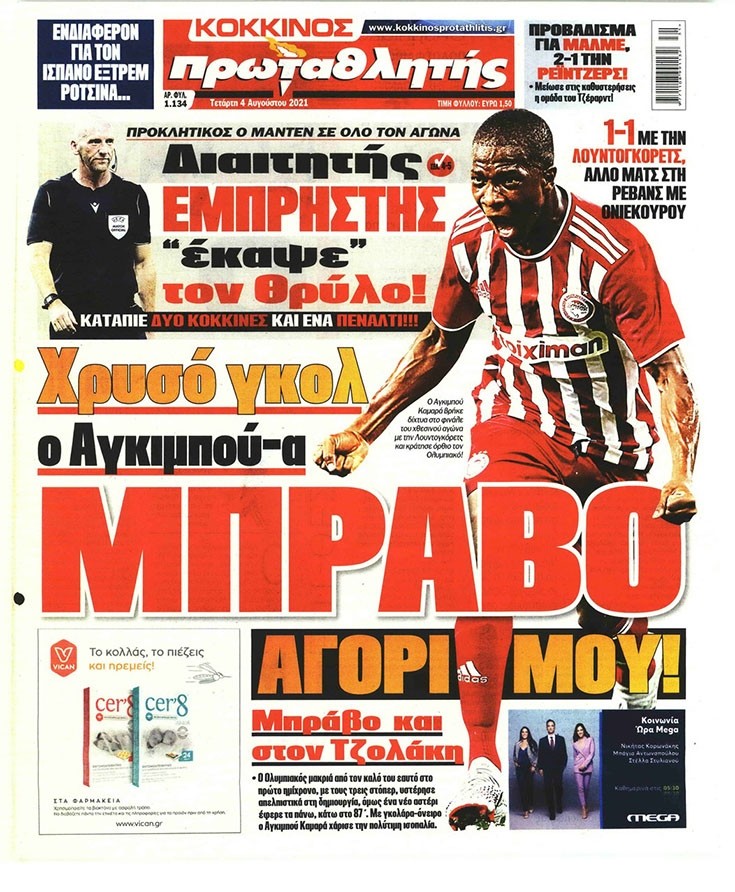 Το πρωτοσέλιδο του Κόκκινου Πρωταθλητή (4/8)