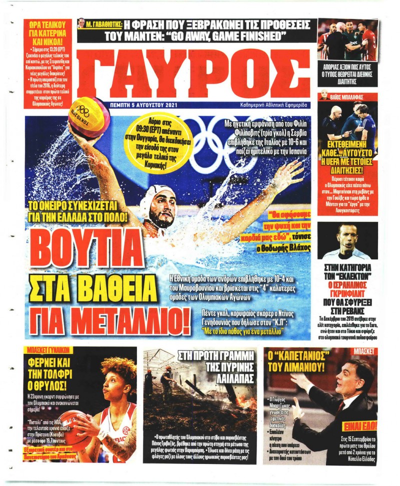 Δείτε τα πρωτοσέλιδα της 5ης Αυγούστου 2021...