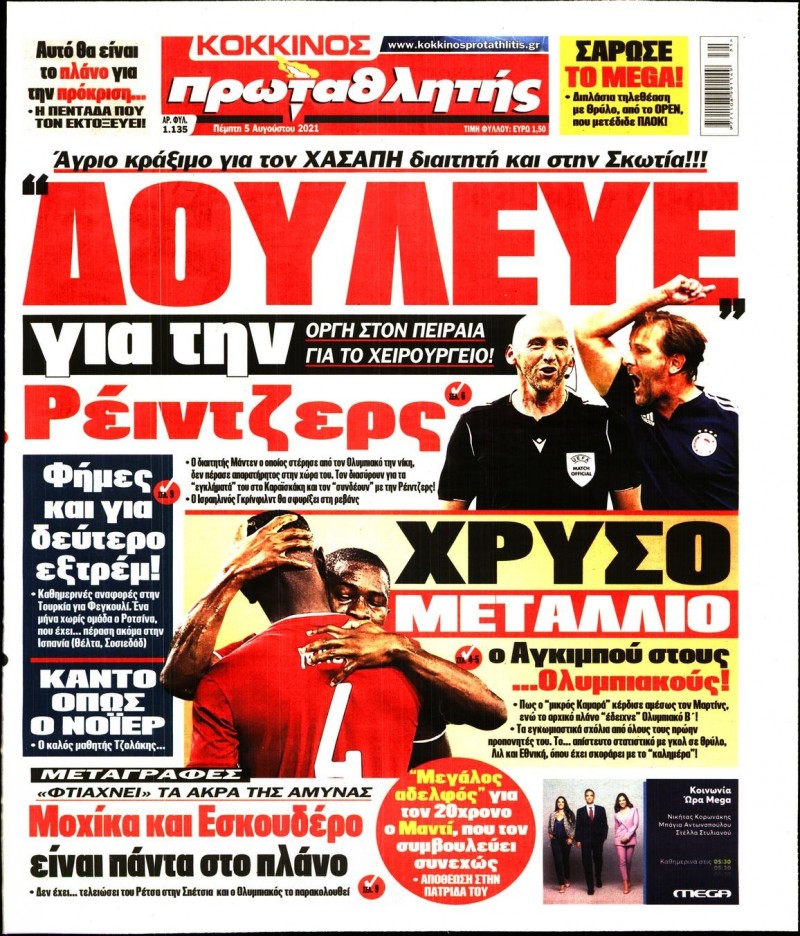 Το πρωτοσέλιδο του Κόκκινου Πρωταθλητή (5/8)