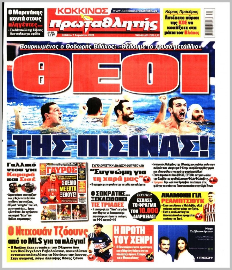 Το πρωτοσέλιδο του «Κόκκινου Πρωταθλητή»,, μπορείτε να δείτε μέσω του σάιτ μας.