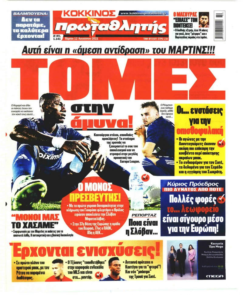 Το πρωτοσέλιδο του Κόκκινου Πρωταθλητή (12/8)