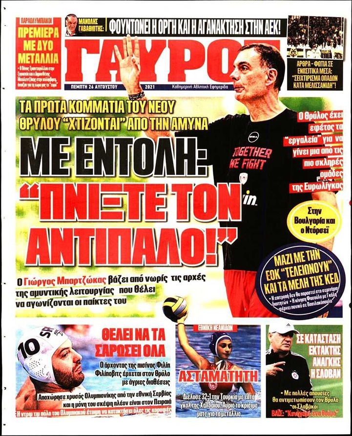 Το πρωτοσέλιδο του Κόκκινου Πρωταθλητή (26/8)