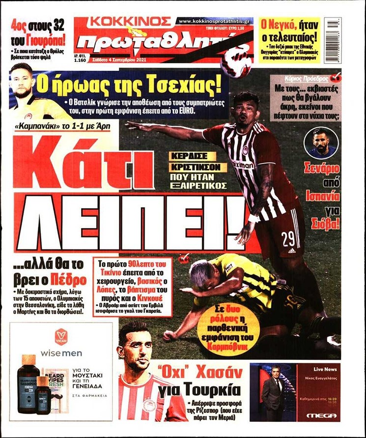 Το πρωτοσέλιδο του Κόκκινου Πρωταθλητή (4/9)