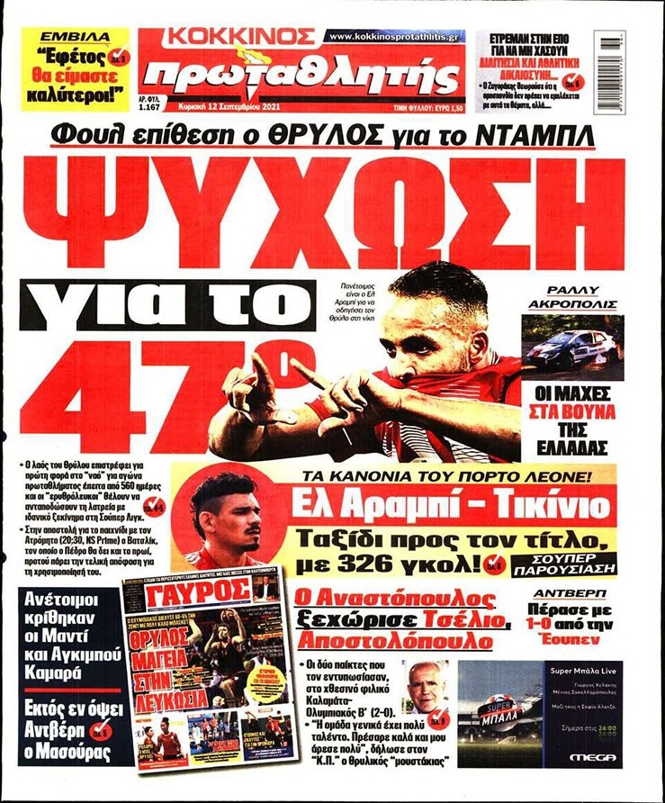Το πρωτοσέλιδο του Κόκκινου Πρωταθλητή (12/9)